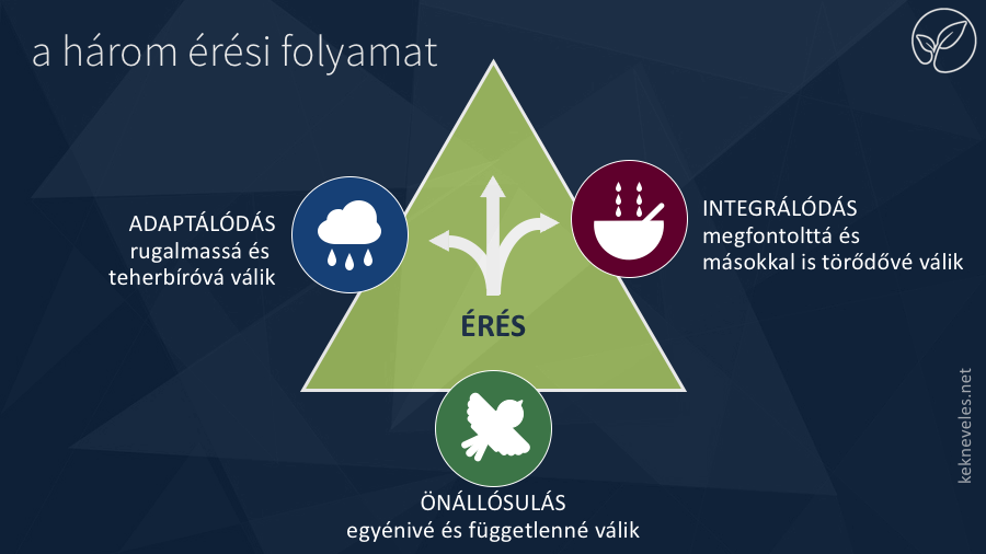 Mindhárom érési folyamatra szükség van az emberi potenciál kibontakozásához. Ezeket a folyamatokat a való életben nem is lehet külön-külön megfigyelni, mert egymásra is hatnak, és együtt alkotják az érés folyamatát. Ennek ellenére külön-külön fogunk velük megismerkedni, és a szülői szerepünkkel is velük kapcsolatban. Az érési folyamatok spontán zajlanak, mert a természet vezérli őket belülről. A természet a “fő mozgató”, mert előre meghatározott terv szerint spontán, belülről vezérli az érési folyamatokat.
