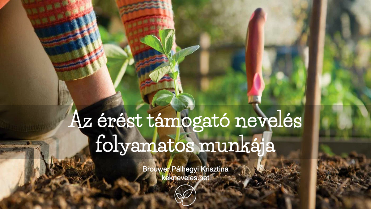 A fegyelmezés témáját folytatjuk a KÉK nevelés három mesterfogásával, amelyek a természetes érési folyamatokat, és ezzel a nevelés célját támogatják. Az érést támogató nevelés igazi kertészeti munka. Nap mint nap végezzük, hogy az érési folyamatok meghozzák a gyümölcsüket, amikor eljön az ideje. A külső kontroll helyét végül átveszi a belső (önirányítottság), és a szülői fegyelmezés helyére lép az önfegyelem.
